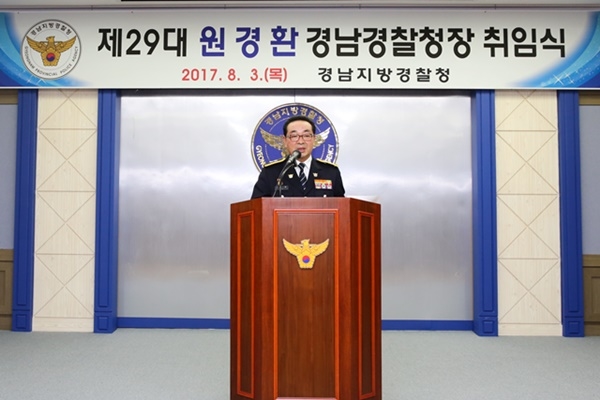 원경환 청장은 취임사에서 “수려한 자연환경과 활성화된 첨단산업단지로 유명한 경남지역의 치안책임자로 부임하게 돼 영광스럽게 생각한다”며 “337만 경남도민의 안전과 지역의 치안질서를 수호하기 위해 최선을 다하겠다”고 밝혔다.