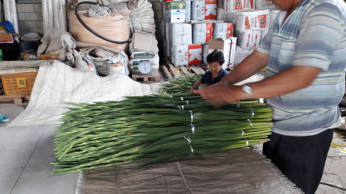 화훼작목반은 올해 글라디올러스 생산을 위해 수입산 종구 16만 9000구를 구입해 재배했으나 고온에 의한 이상기온과 연작으로 인해 작황실적은 전년도에 비해 다소 떨어졌다.