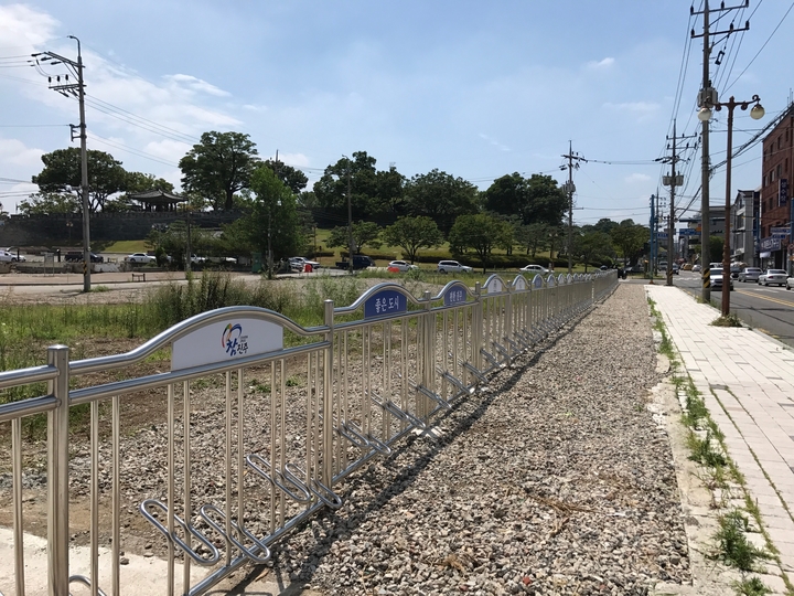 이에 따라 부지 내 출입으로 인한 추락과 실족사고 등 안전사고 발생을 막고 문화재 훼손 방지를 위해 가장자리에 펜스 겸용 자전거보관대를 설치했다.
