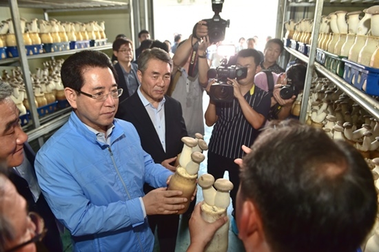 [쿠키뉴스 진주=이영호 기자] 김영록 농림축산식품부 장관이 10일 경남 진주시 금곡면 참진주버섯수출영농조합법인을 찾아 현장을 점검했다.