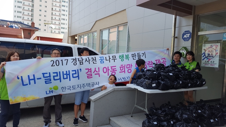[쿠키뉴스 사천=이영호 기자] LH(한국토지주택공사) 임직원 15명은 지난 11일 ‘LH 딜리버리’ 결식아동 희망도시락 제공 사업의 일환으로 방학을 맞은 저소득가구 아동 100명에게 직접 만든 ‘집밥’ 도시락을 배달했다.