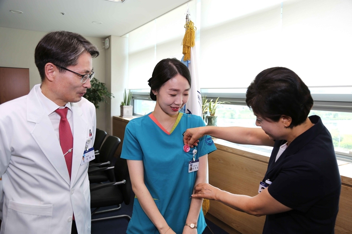 임신 19주차로 병동에서 근무하는 간호사는 “임신 초기라 겉으로 잘 드러나지 않았는데 배지를 착용하고 난 뒤 환자분들이나 보호자들께서 먼저 알아봐 주시고, 배려해 주셔서 감사한 마음”이라고 말했다.