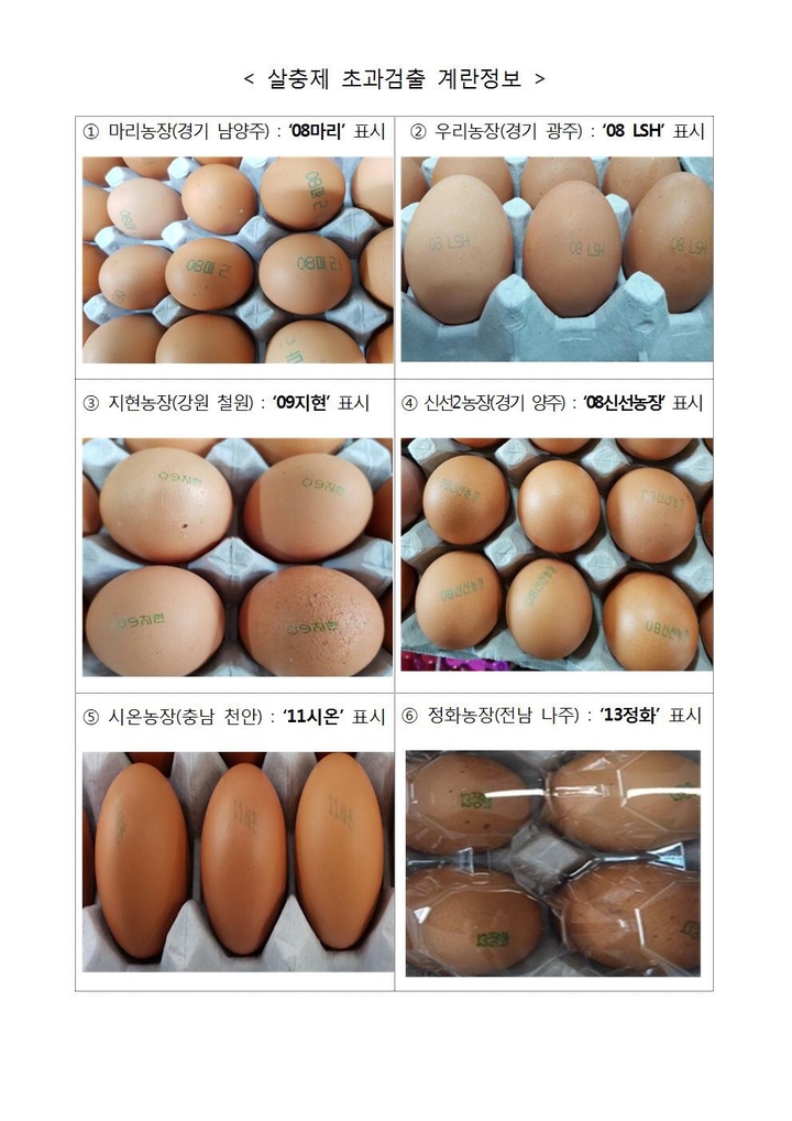 식약처는 "난각에 표시된 정보를 확인하고 살충제가 검출된 농장에서 생산된 것으로 확인되면 먹지 말고 판매처에 반품하라"고 설명했다.