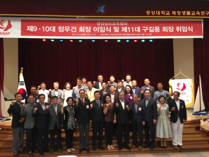 [쿠키뉴스 통영=이영호 기자] 경상남도요트협회가 지난 29일 통영시 경상대학교 해양과학대학 해양생물교육센터에서 회장 이·취임식을 개최했다.