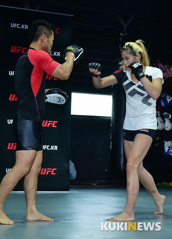 [쿠키뉴스=박태현 기자] UFC 선수 전찬미가 6일 오전 서울 보광로 이태원MMA에서 공개훈련을 하고 있다.