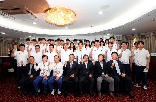 [쿠키뉴스=이다니엘 기자] 대한체육회(회장 이기흥)는 6일 오전 서울 올림픽파크텔 2층 서울홀에서 제5회 아시가바트 아시아실내무도대회에 참가하는 대한민국 선수단의 결단식을 개최했다.
