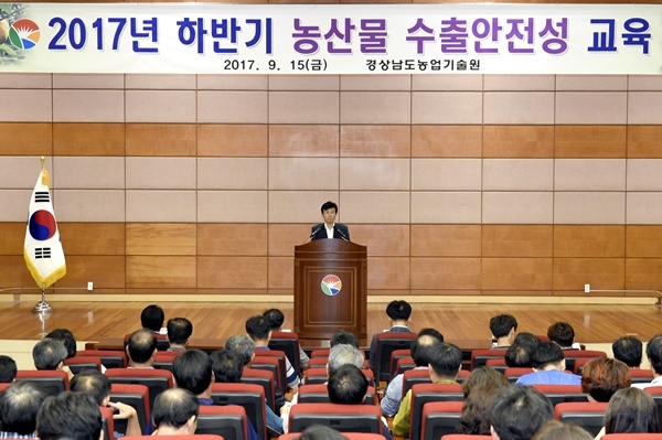 경상남도농업기술원이 급변하는 글로벌 농식품 수출환경에 적극 대응하기 위한 ‘2017년 하반기 농산물 수출안전성 교육’을 15일 진행했다.