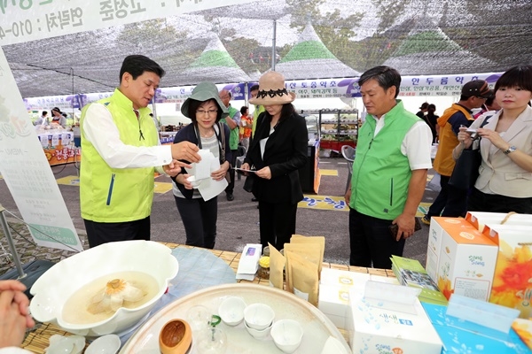또한 아토피 항노화 체험관을 찾아 지리산 청강원 부스에서 제품 설명을 듣고 관광객들에게 제품의 장점을 알렸다.