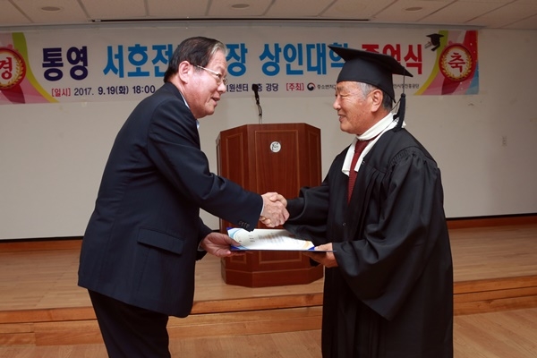 경남 통영시가 서호전통시장 활성화를 위해 개설한 '서호전통시장 제5기 상인대학' 졸업식이 지난 19일 열렸다.
