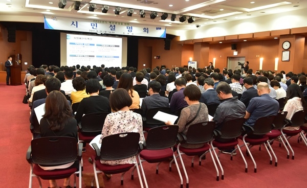 경남 진주시가 22일 시청 시민홀에서 시민, 직원 등 250여 명이 참석한 가운데 2018년도 예산편성을 위한 시민설명회를 열었다.