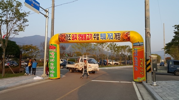 경남 거창군 가조면에서 주말마다 돼지양념불고기 특미거리가 열린다.