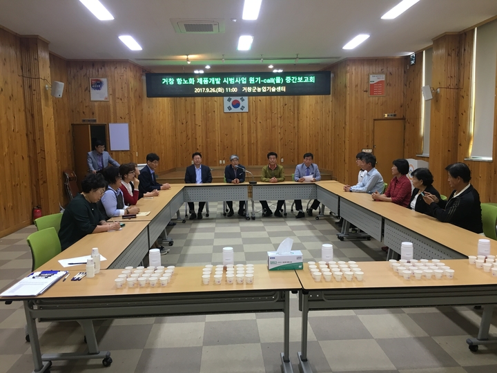 거창군은 26일 항노화 제품개발 시범사업으로 추진되고 있는 ‘원기콜-call’ 중간보고회를 군농업기술센터에서 열었다.