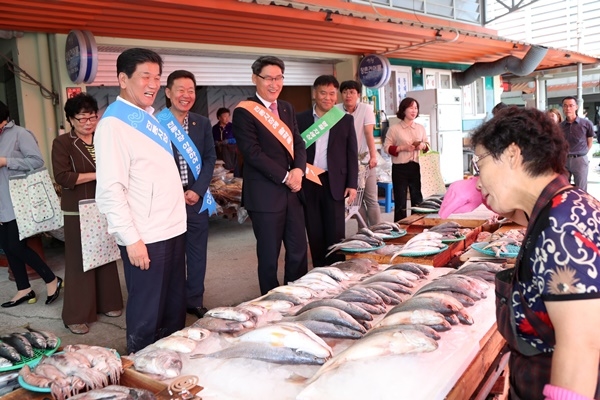 경남 산청군과 산청군의회, 산청군농협이 추석을 맞아 전통시장 장보기 행사를 열었다.