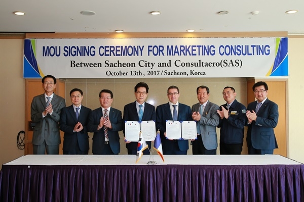 사천시가 13일 경남 사천시 남일대리조트에서 프랑스 Consultaero사와 지역 항공부품업체의 직수출 컨설팅 지원을 위한 MOU를 체결했다.