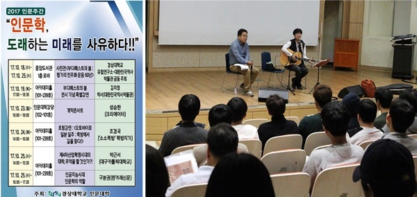 국립 경상대학교가 인문대학이 2017년 인문주간을 맞이해 18일부터 25일까지 1주일간 ‘인문학, 도래하는 미래를 사유하다’라는 주제로 가좌캠퍼스 일원에서 인문주간 행사를 마련한다.