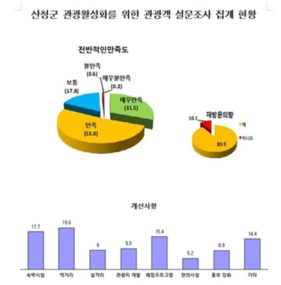 산청군은 지난 7월부터 8월까지 군을 방문한 관광객 1625명을 대상으로 설문조사를 한 결과를 발표했다.
