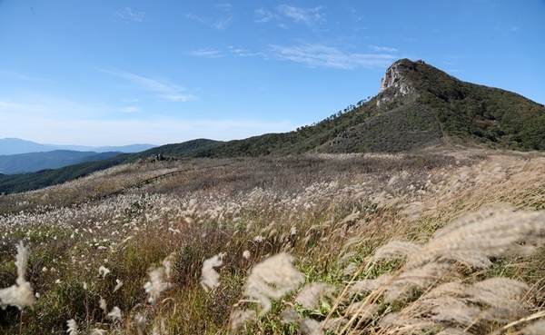 경남 산청군 차황면 황매산이 억새로 뒤덮여 장관을 이루고 있다.