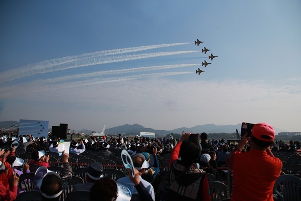 오는 30일 까지 열리는 이번 엑스포에서는 공군 블랙이글스 특수비행팀과 호주 폴베넷 곡예비행팀의 에어쇼가 단연 인기다.