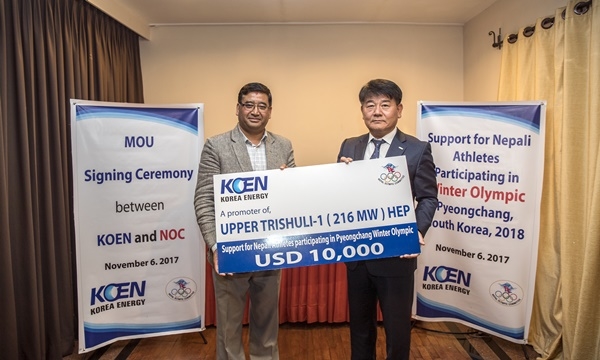 남동발전은 지난 6일 회사가 수력발전소를 건설 중인 네팔 현지에서 네팔 올림픽위원회와 ‘2018 평창 동계올림픽 붐업 조성 및 네팔선수단 용품지원을 위한 업무협약’을 체결했다.