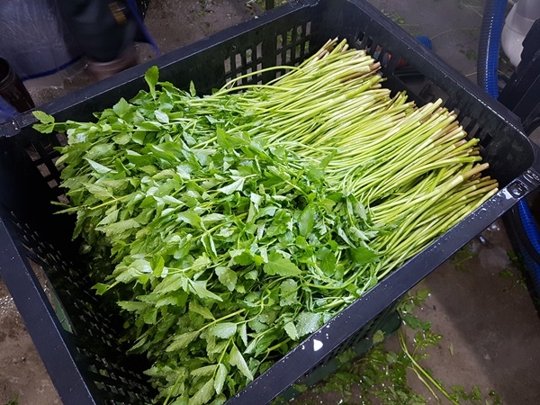 하동군에 따르면 지난 19일 횡천면 애치리 정형용 씨 농가에서 4㎏들이 미나리 20상자를 출하한 것을 시작으로 본격적인 수확에 들어갔다.