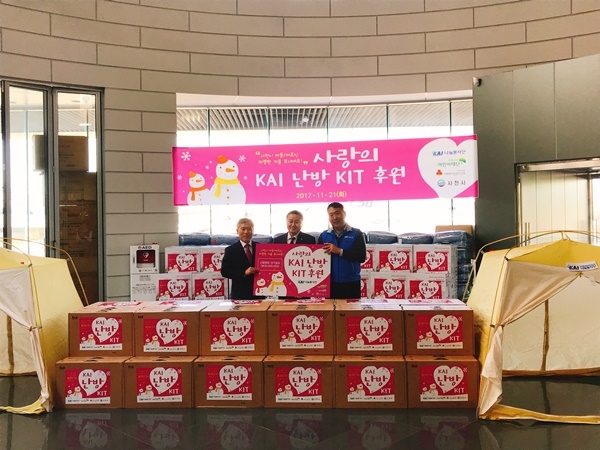 KAI 나눔봉사단은 매년 겨울을 앞두고 지역의 어려운 이웃을 위해서 난방 물품을 전달하고 있으며, 올해는 노인들을 위한 전기요와 이불 100세트, 아동들을 위한 난방텐트와 이불 100세트 등 총 200세대에게 난방 물품을 전달했다.