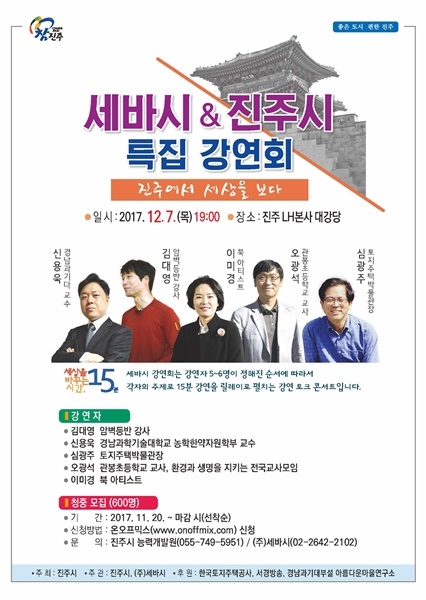 청중은 누구나 신청할 수 있으며, 세바시 공식 접수창구인 온오프믹스로 접속해 세바시 진주강연을 선택하면 된다.