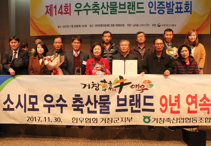 거창 한우 애우가 (사)소비자시민모임이 주관하고 농림축산식품부가 후원하는 제14회 우수축산물 브랜드 인증 발표회에서 9년 연속 우수축산물 브랜드로 인증됐다.