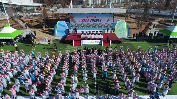 한국토지주택공사(LH)가 1일 경남 진주 본사 종합운동장에서 경남혁신도시 이전기관 임직원, 경남 18개 시·군의 자원봉사자 등 800여 명이 참여하는 대규모 김장한마당 행사를 열었다.