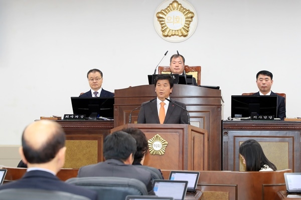허 군수는 지난 1일 열린 산청군의회 제249회 제2차 정례회에서 시정연설을 했다.