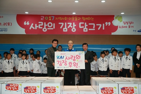 KAI 나눔봉사단장 김조원 사장은 “직원들과 김장 봉사를 함께 하게 되어 보람을 느낀다. 김치뿐만 아니라 우리 직원들과 가족들의 따뜻한 마음과 정성이 이웃들에게 잘 전해졌으면 좋겠다”고 말했다.