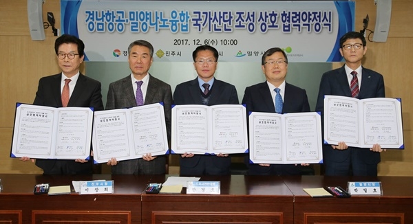 경남도는 6일 도정회의실에서 진주시, 사천시, 밀양시, 한국토지주택공사(LH)와 경남항공·밀양나노융합 국가산업단지 성공적 조성을 위한 상호협력 약정식을 열었다.