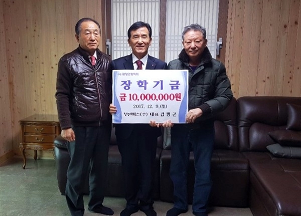 함양군 향우 ㈜부천버스 김병곤 대표(72)가 지난 1월에 이어 또다시 1000만 원의 장학금을 기탁했다.