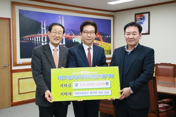 사남농공단지협의회가 지난 8일 사천시청을 방문해 사천시 인재육성 장학금 1000만 원을 전달했다.