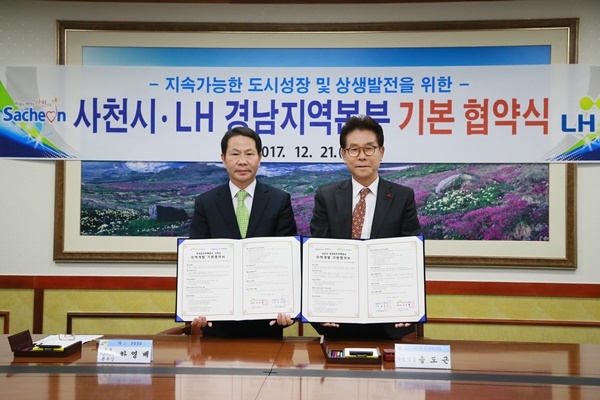 사천시와 LH 경남지역본부가 지난 21일 사천시청에서 지속가능한 도시성장과 상생발전을 위한 지역개발 기본협약을 체결했다.