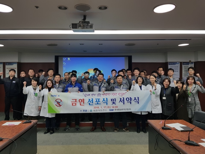 사천시보건소가 지난 17일 한국항공우주산업(KAI)외 2개 사업장, 금연펀드 희망자 35명과 함께 금연선포식을 열었다.