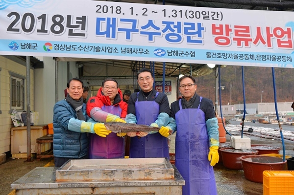 남해군은 어업인의 소득 증대와 수산 자원 증강을 위해 지난 2008년부터 대구의 산란시기로 포획금지기간인 매년 1월 한 달 동안 대구 수정란 방류사업을 추진하고 있다.