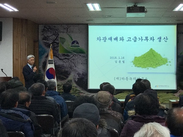 지난 3년간 차광재배 기술연구를 수행한 녹차연구소 책임연구원인 김종철 박사는 이날 강사로 나서 향후 가루녹차 시장을 전망하고 연구 노하우를 농업인들에게 소개했다.