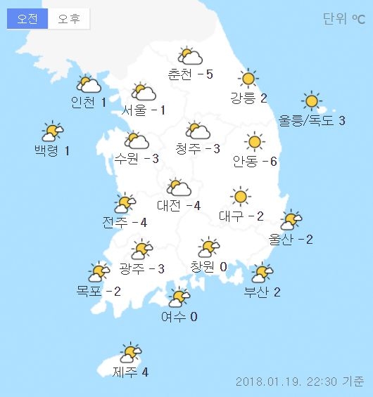 기상청은 “오후까지 옅은 안개나 연무가 끼는 곳도 있으니 교통안전에 각별히 유의해야 한다”라고 당부했다.