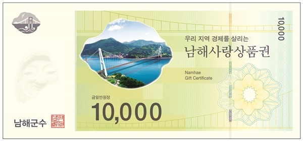 상품권은 1만 원권 1종 금액으로 우선 발행될 계획이며, 남해군은 추후 소비자의 사용형태에 따라 상품권의 종류를 확대해 나갈 방침이다.