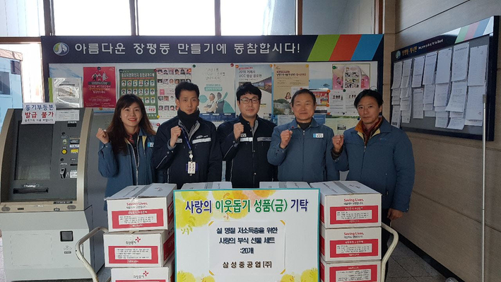 삼성중공업이 설을 맞아 ‘사랑의 부식 선물’ 20세트를 사업장이 소재한 거제시 장평동주민센터에 기탁했다.