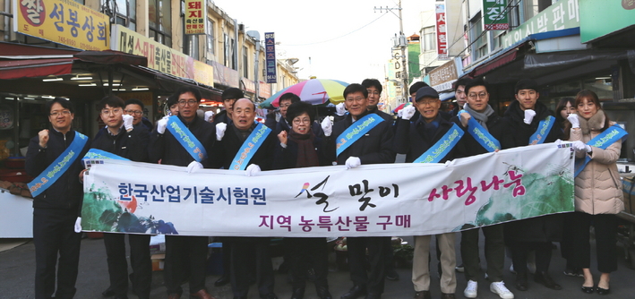 한국산업기술시험원(KTL) 임직원들이 설 명절을 앞두고 지난 12일 진주 중앙시장을 방문해 지역 특산물을 구매하는 장보기 행사를 열었다.