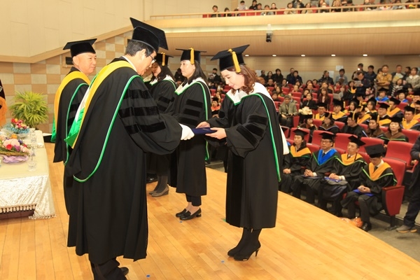 이날 학위수여식에서는 박사 97명, 석사 441명, 학사 2486명이 각각 학위를 받았다.