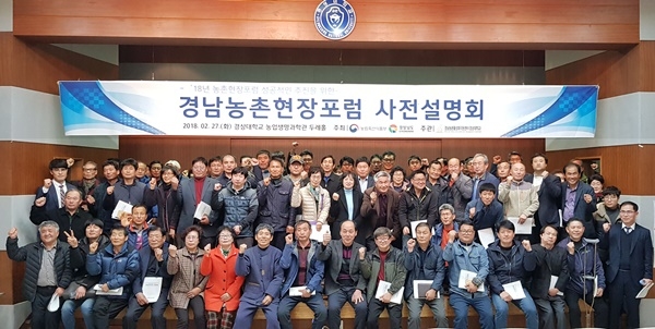 같은 날 두레홀에서는 경남도와 14개 시·군 담당자, 2018년 농촌현장포럼 대상 마을리더, 참여기관 등 120여 명이 참석한 가운데 ‘경남 농촌현장포럼 사전설명회’를 열었다.