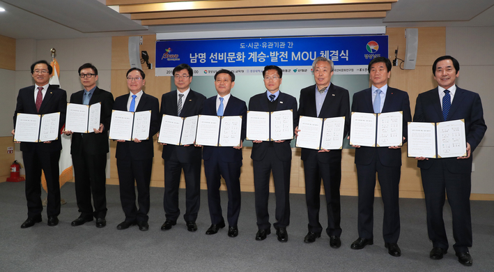 경상남도와 시·군, 경상대학교 등 유관기관이 남명 조식 선생의 업적과 가치를 계승·발전시킬 것을 약속하는 업무협약을 체결했다.