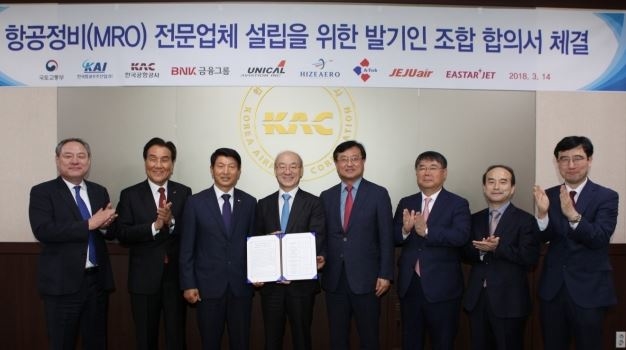 KAI, 한국공항공사 등 8개 업체와 기관은 14일 공항공사에서 ‘항공MRO 전문업체 설립을 위한 발기인 조합 합의서’ 체결식을 열었다.