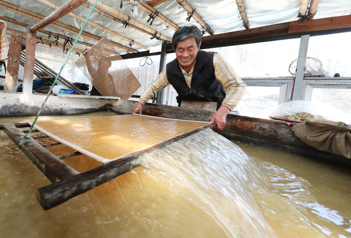 [포토뉴스] 함양 마천면, 지리산 전통 ‘한지 뜨기’