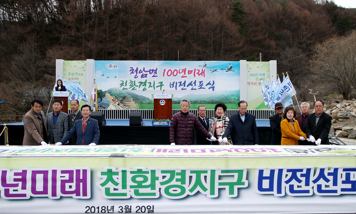 하동군은 20일 오후 청암면 묵계리 청학동 공영주차장에서 ‘청암면, 100년 미래 친환경지구 비전 선포식’을 열었다.