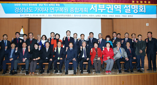 경상남도가 주최하고 도내 서부권역 8개 시군(진주, 사천, 남해, 하동, 산청, 함양, 거창, 합천)이 공동으로 참여하는 ‘경남도, 가야사 연구복원 종합계획 서부권역 설명회’가 22일 경상대학교 박물관에사 열렸다.