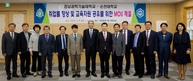 경남과학기술대학교가 지난 26일 본관 대회의실에서 순천대학교와 학생 1:1 맞춤형 취업 프로그램 운영을 위해 협약(MOU)을 체결했다.