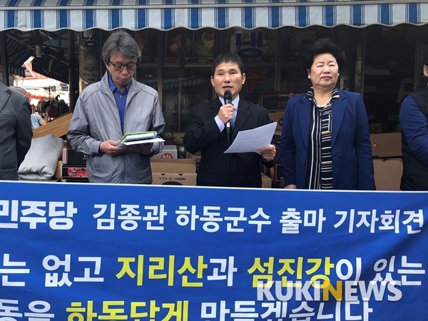 김종관 전 부단장은 27일 하동읍 전통시장 앞에서 기자회견을 열고 “이번 선거에서는 행정관료 출신보다는 군민과 농촌생활을 맨몸으로 경험하고 체험하면서 농민과 서민의 상처를 잘 알고 참뜻을 대변할 수 있는 힘 있는 여당 군수 후보 김종관 만이 어렵고 힘든 하동군의 문제점을 해결할 수 있다”고 밝혔다.